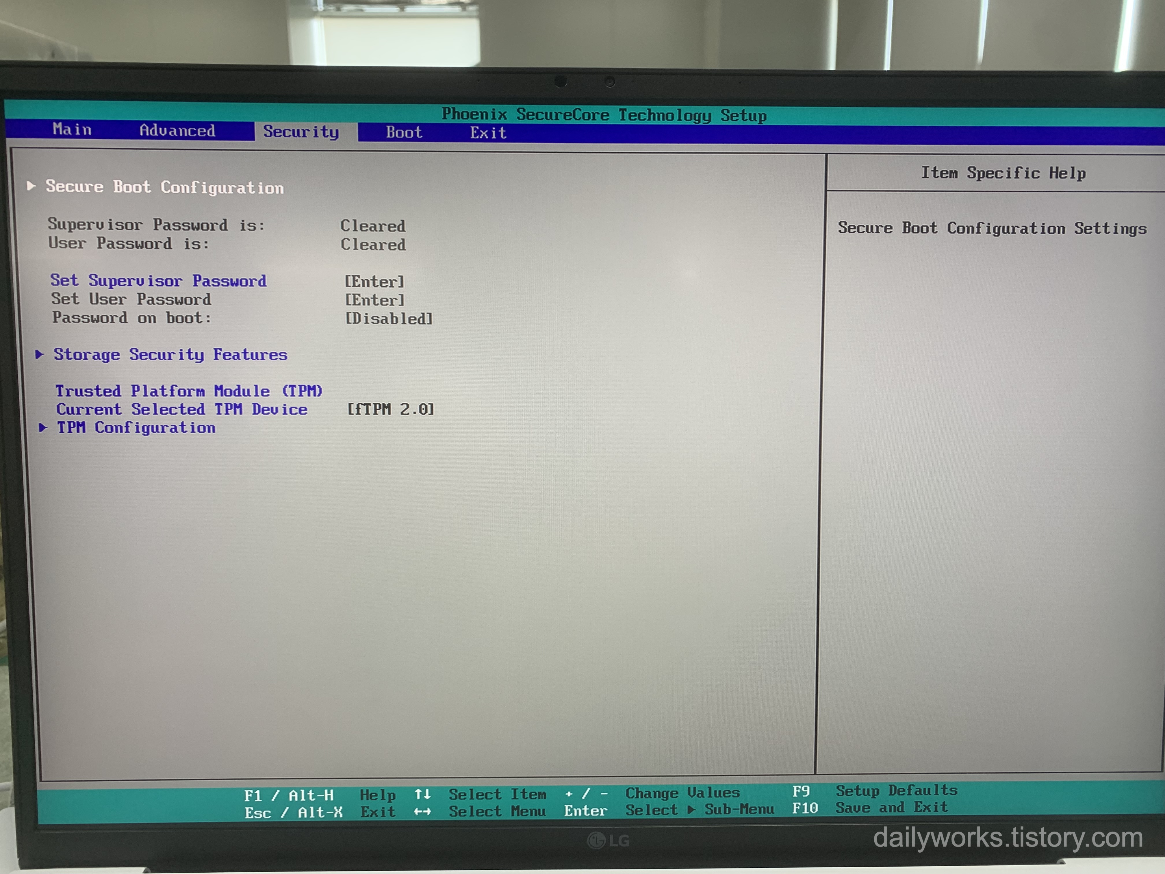 💡 LG GRAM 노트북 TPM ON/OFF 설정 방법 (윈도우 11, 비트락커 설정 전 필수 확인) (0) | 2025.06.27 |