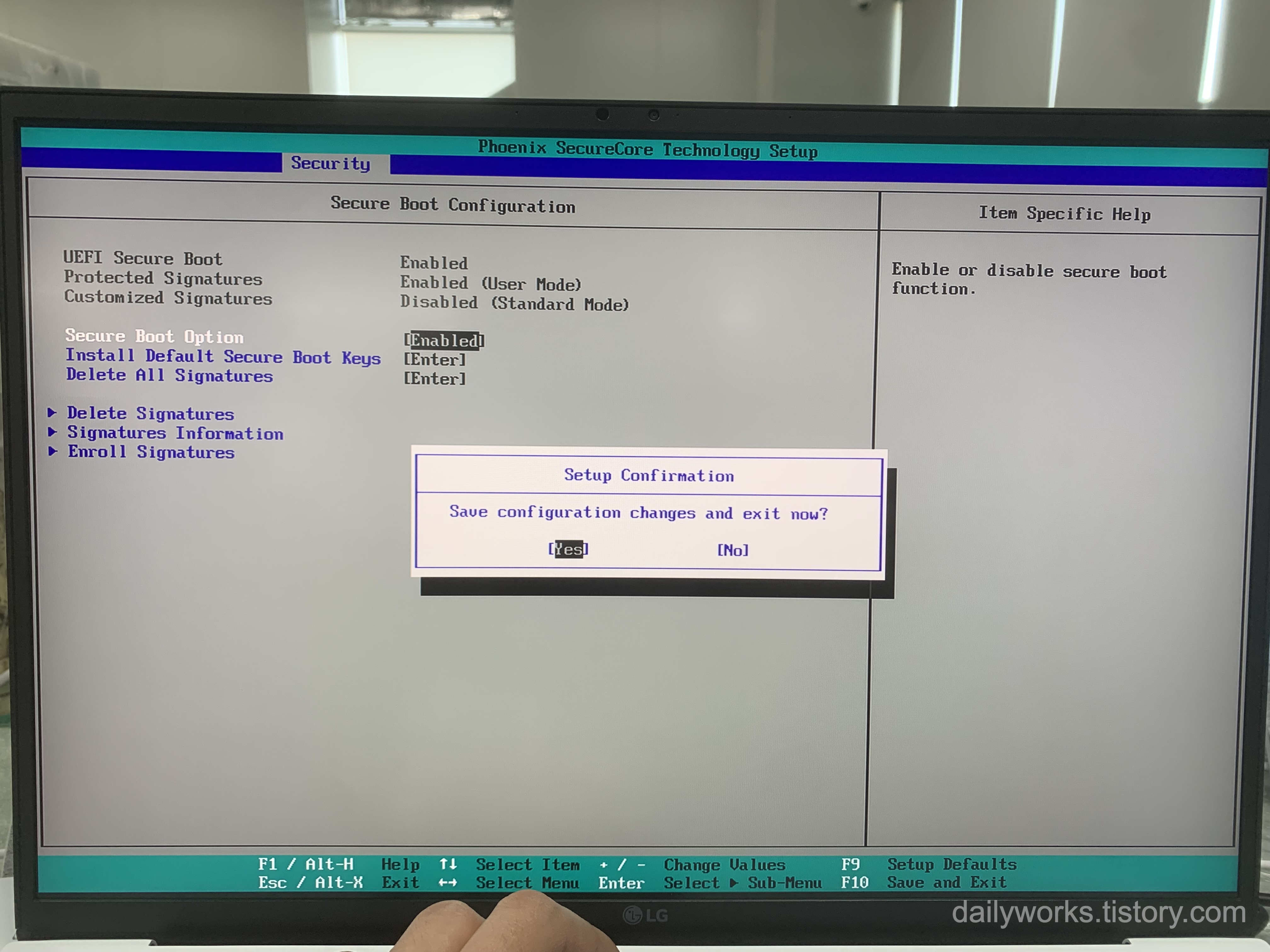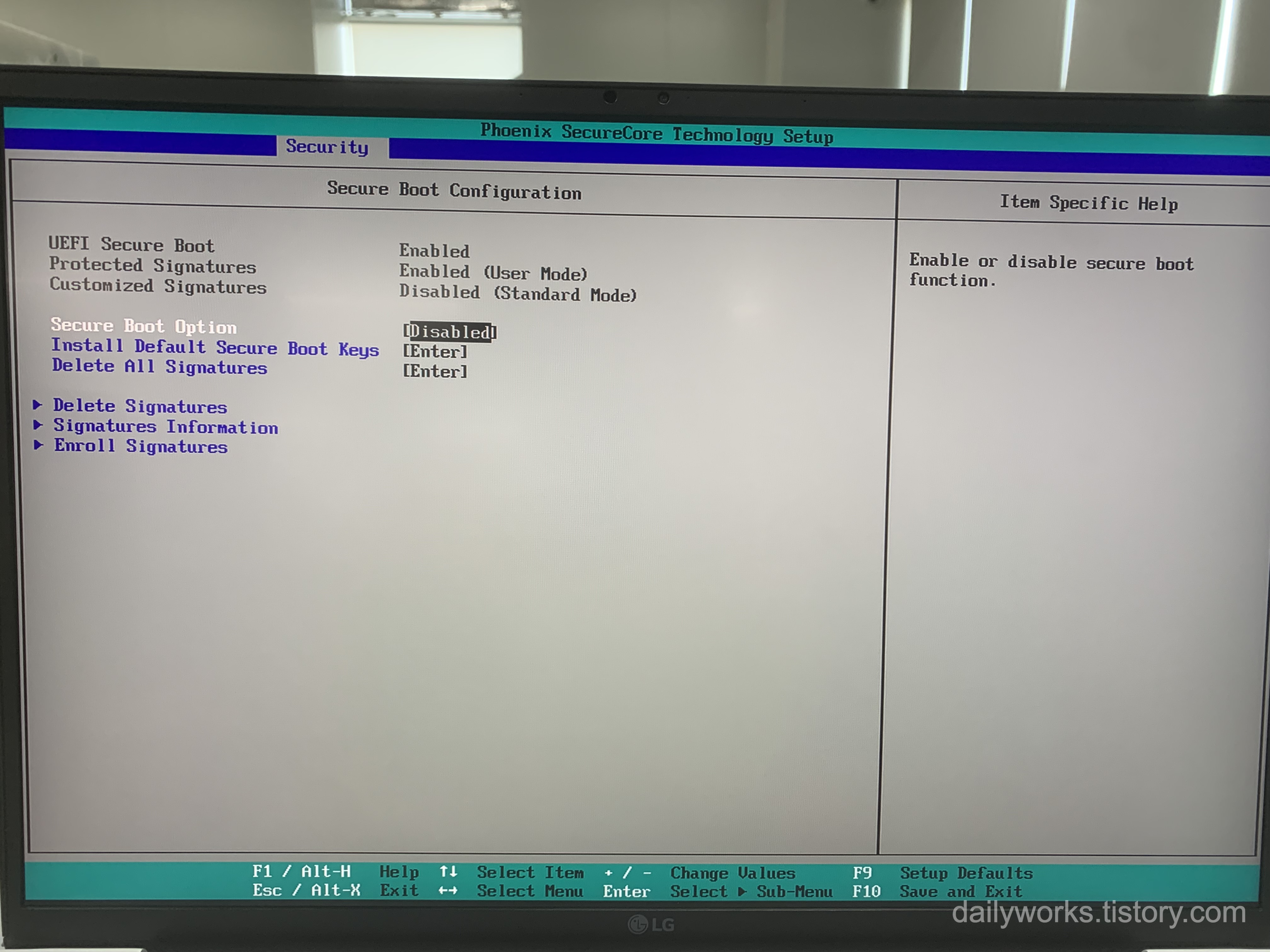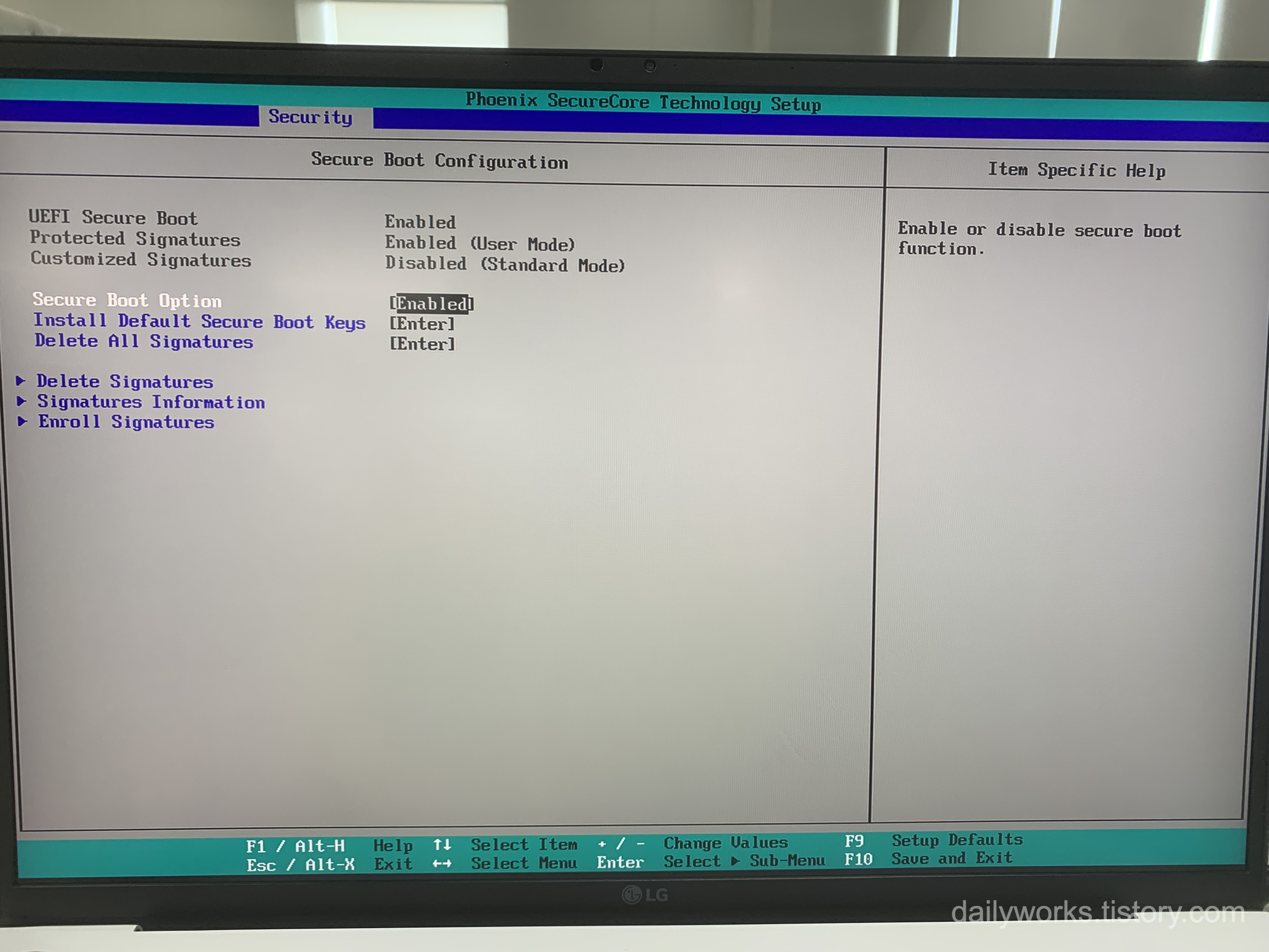 보안 이슈나 회사 보안 정책 때문에 Secure Boot를 다시 켜야 하는 경우도 있습니다.