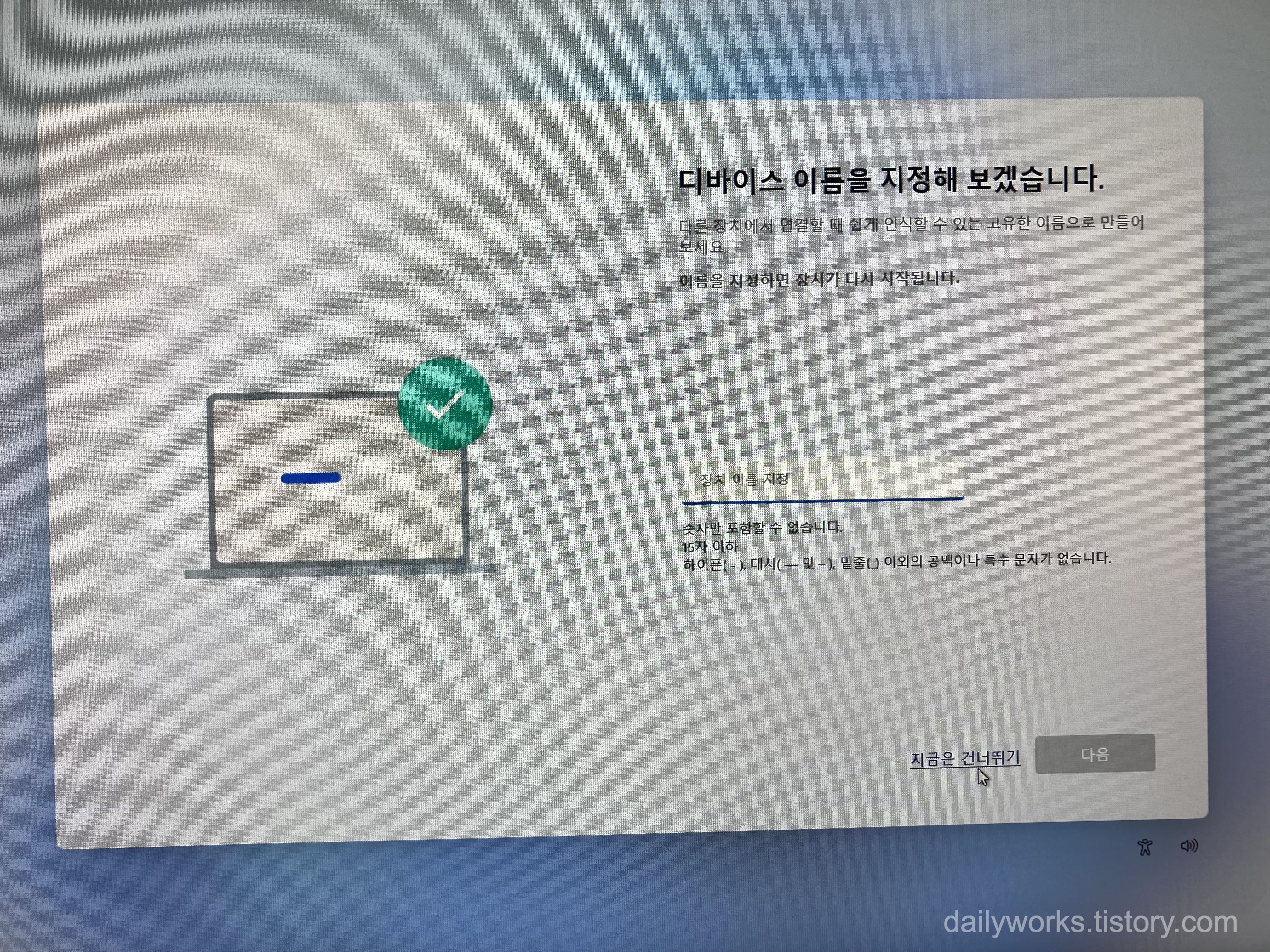 현재는 굳이 이름을 바꿀 필요 없으니 **[지금은 건너뛰기]**를 선택하세요.