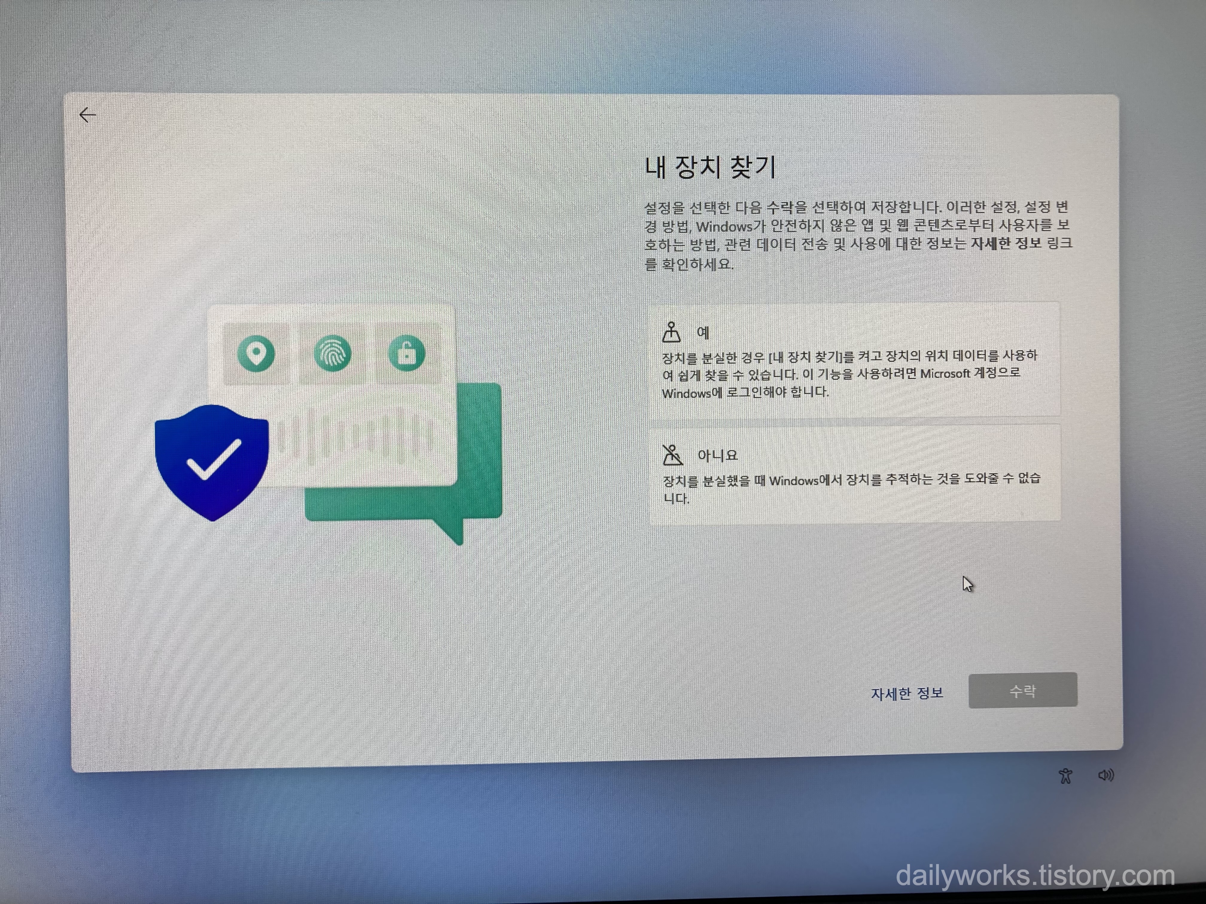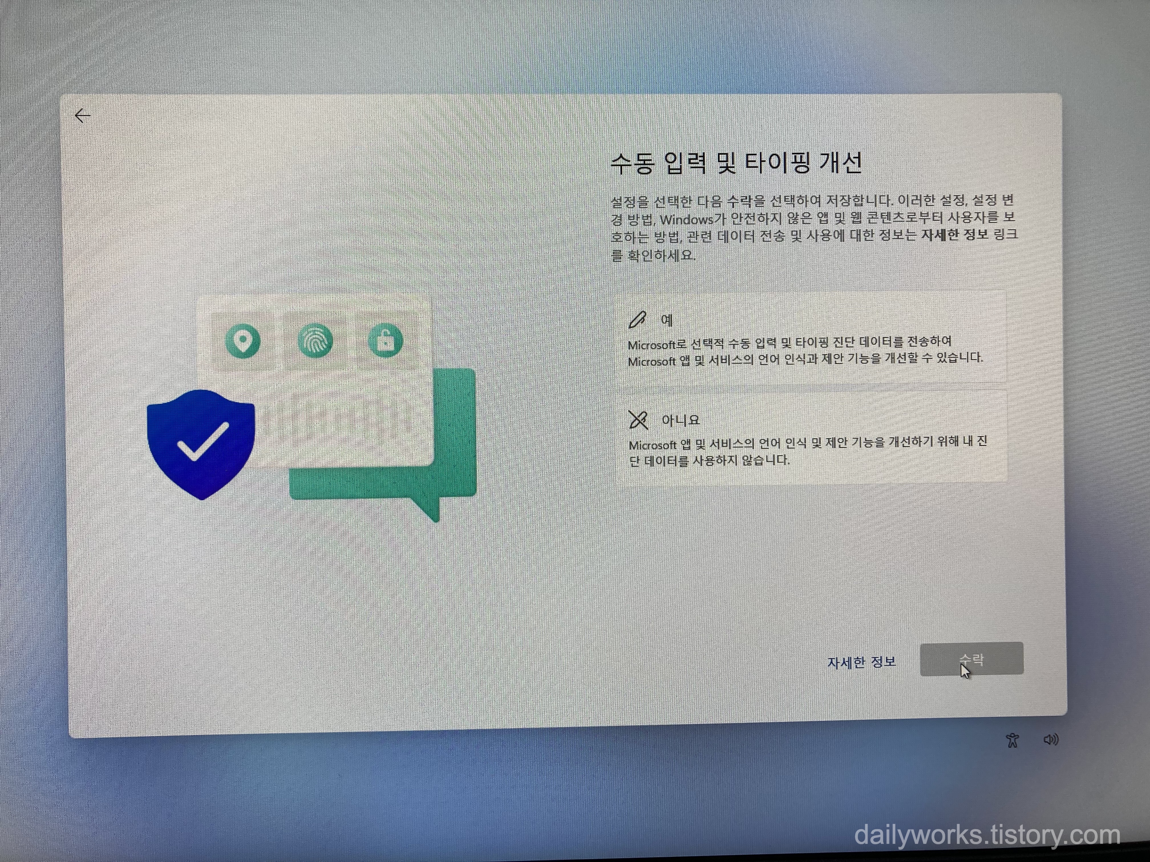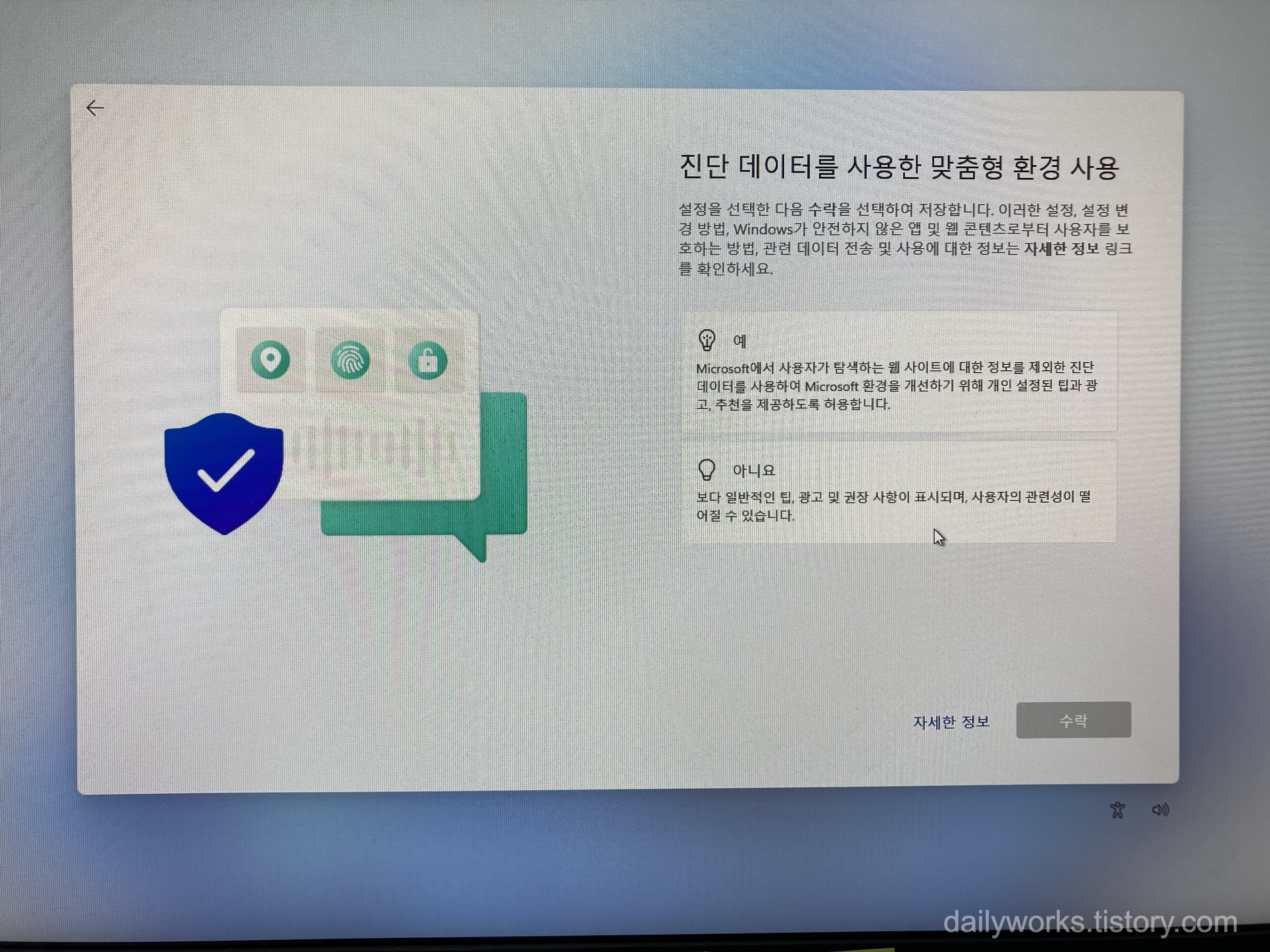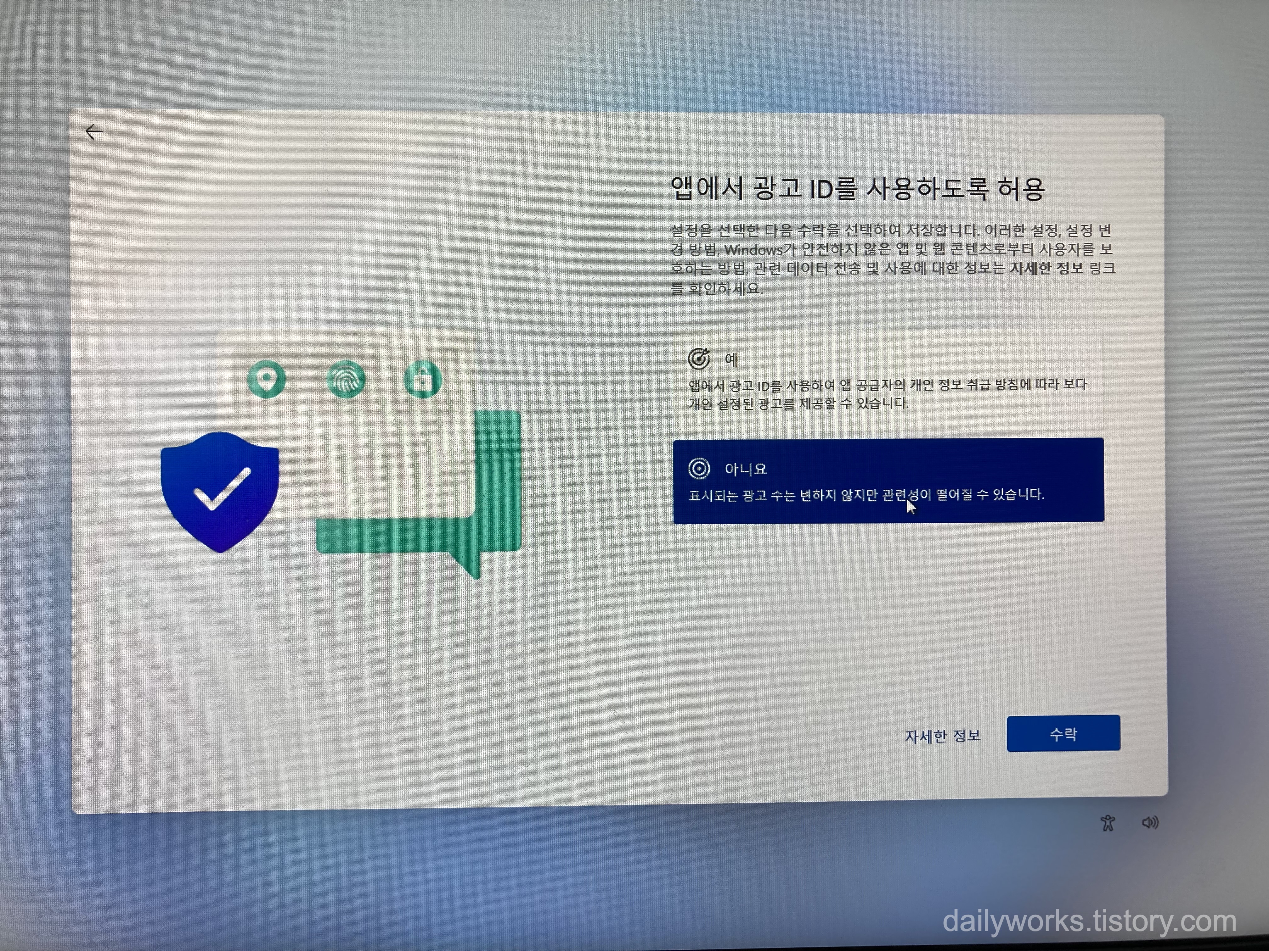 모두 [아니요]를 선택하는 것을 추천합니다.