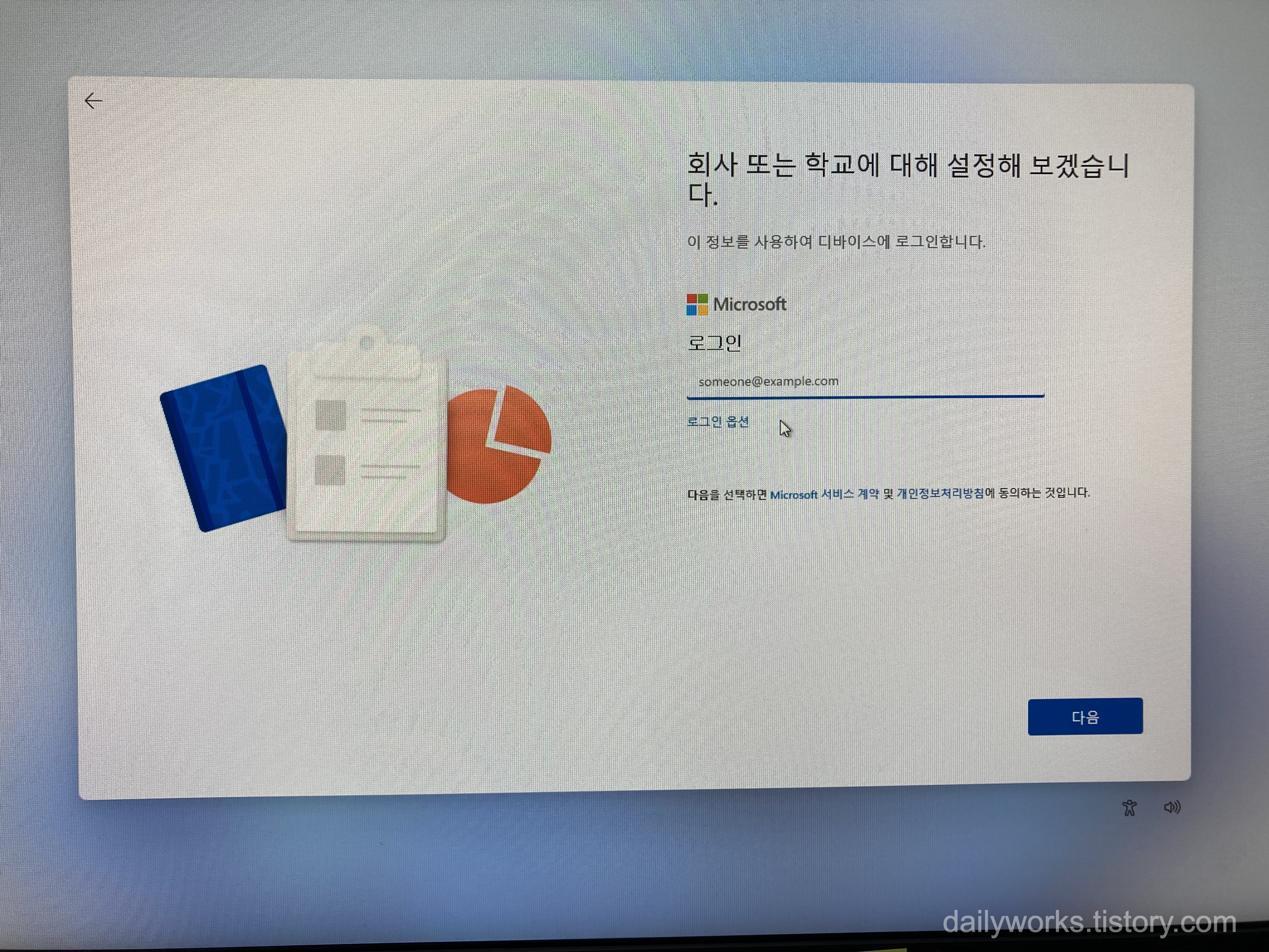 이제 Microsoft 계정 입력을 요구하는 창이 나옵니다.
