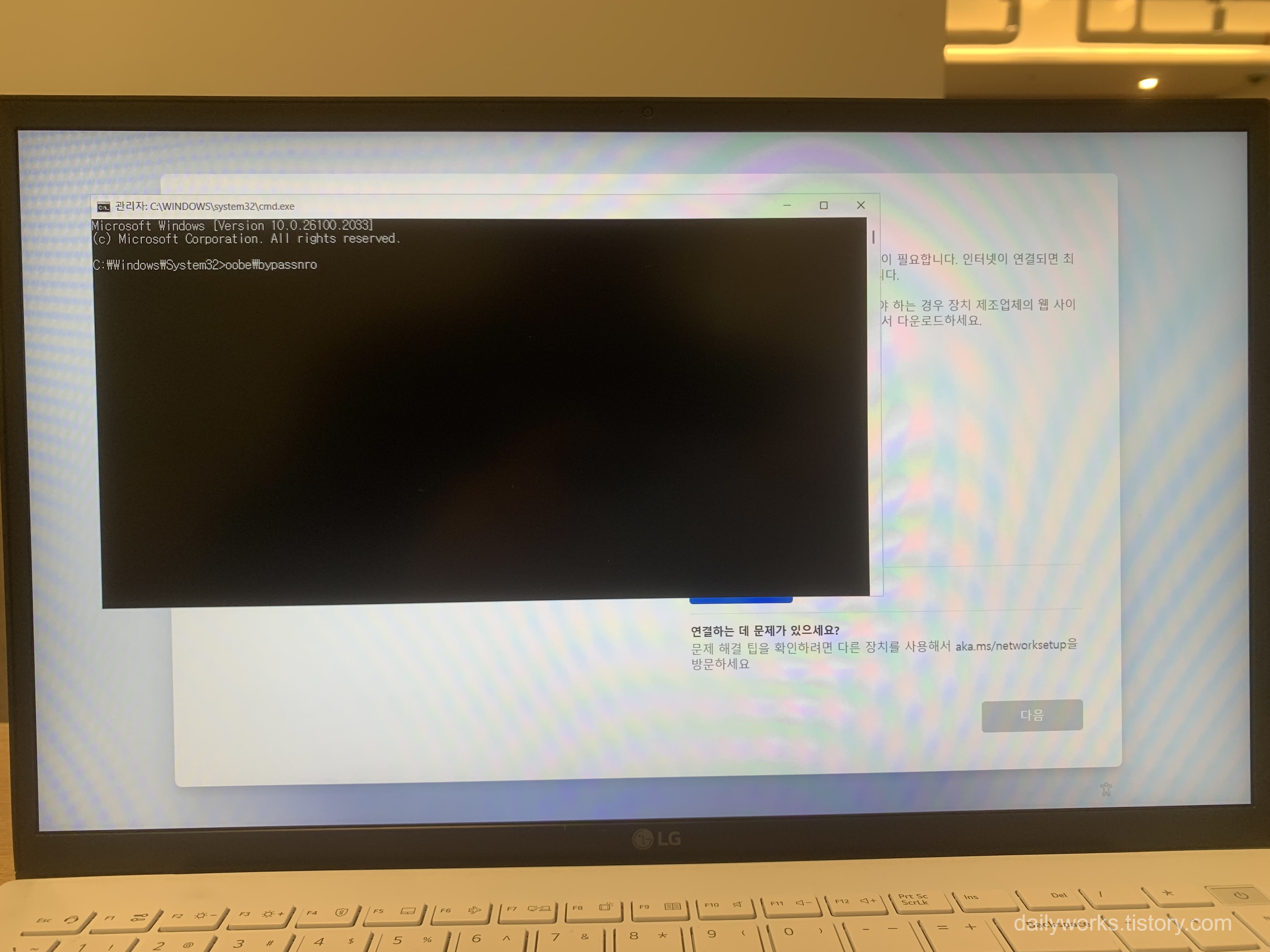 3️⃣ 명령어 입력: oobe\bypassnro 🔡