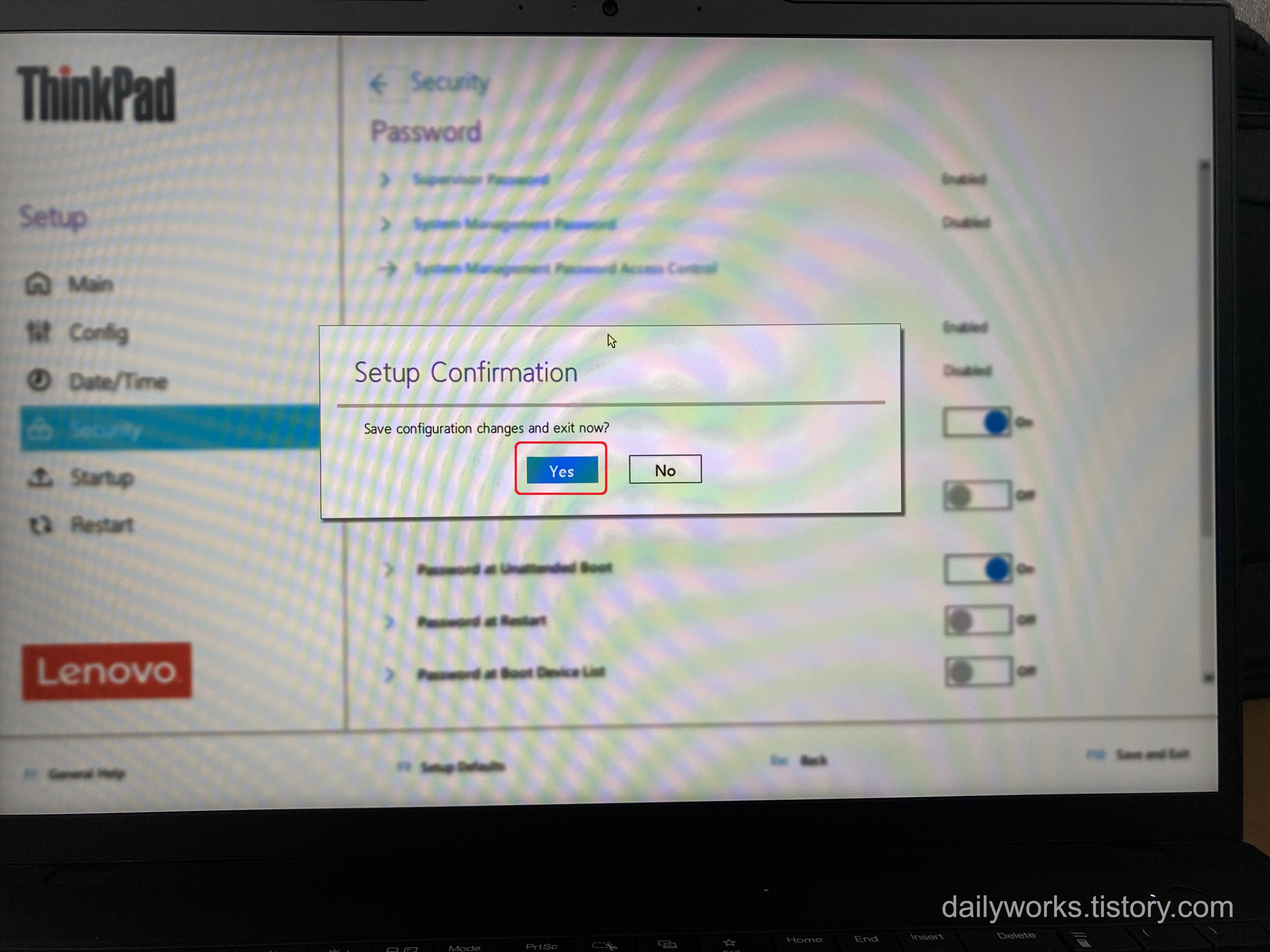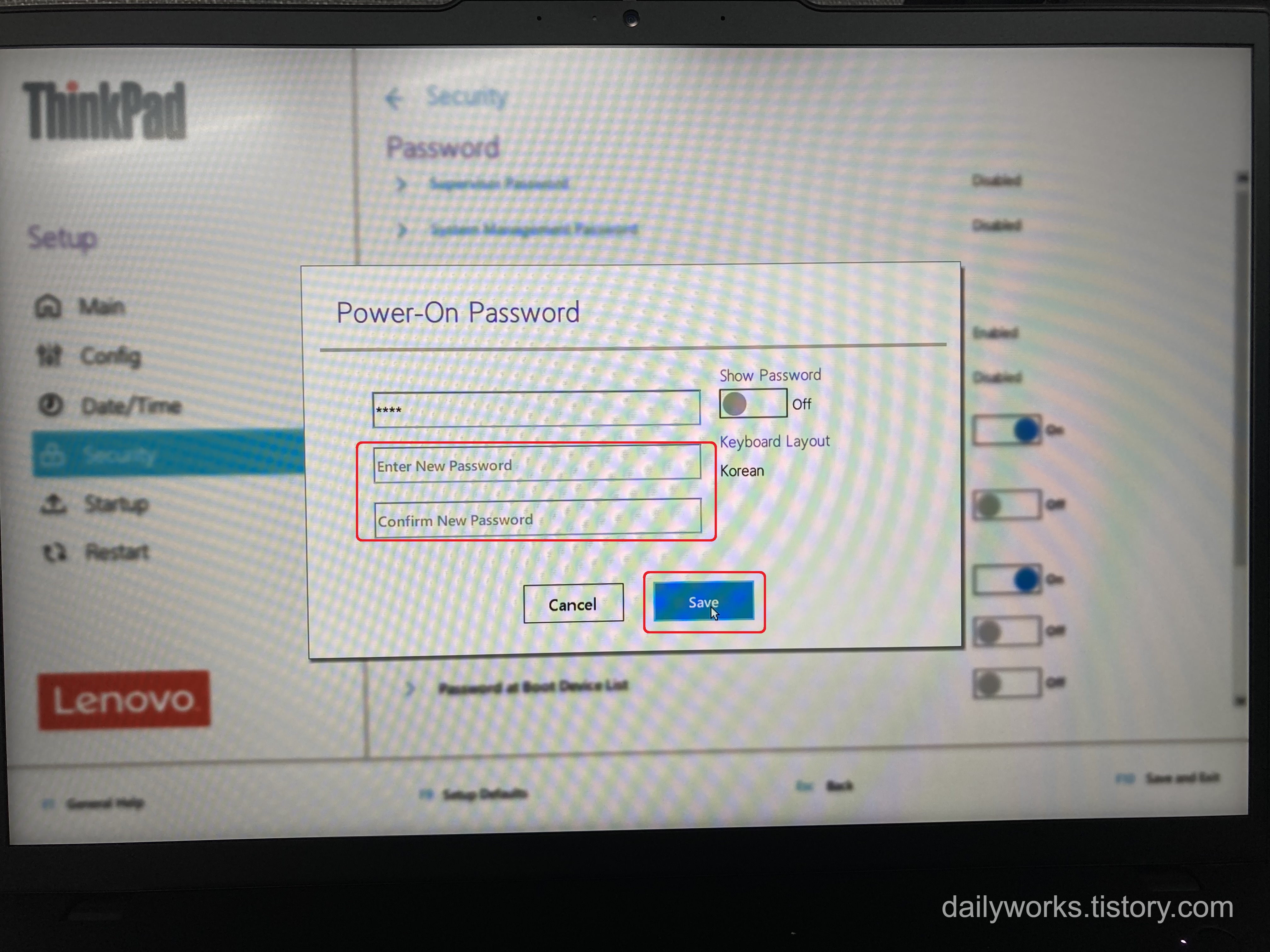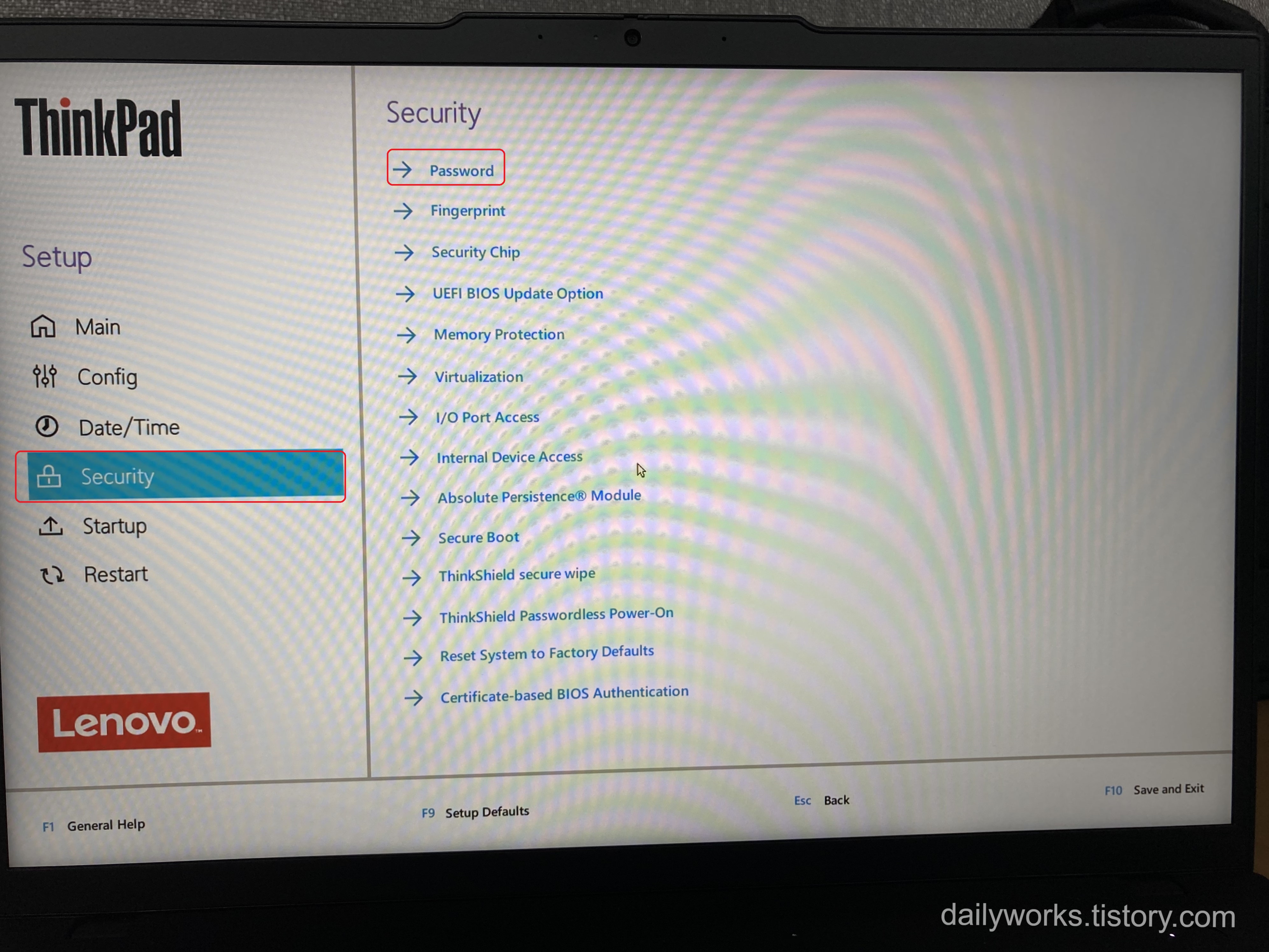 🔐 Lenovo 노트북 BIOS Supervisor Password 설정 방법 (보안 설정 꿀팁) (1) | 2025.07.09 |