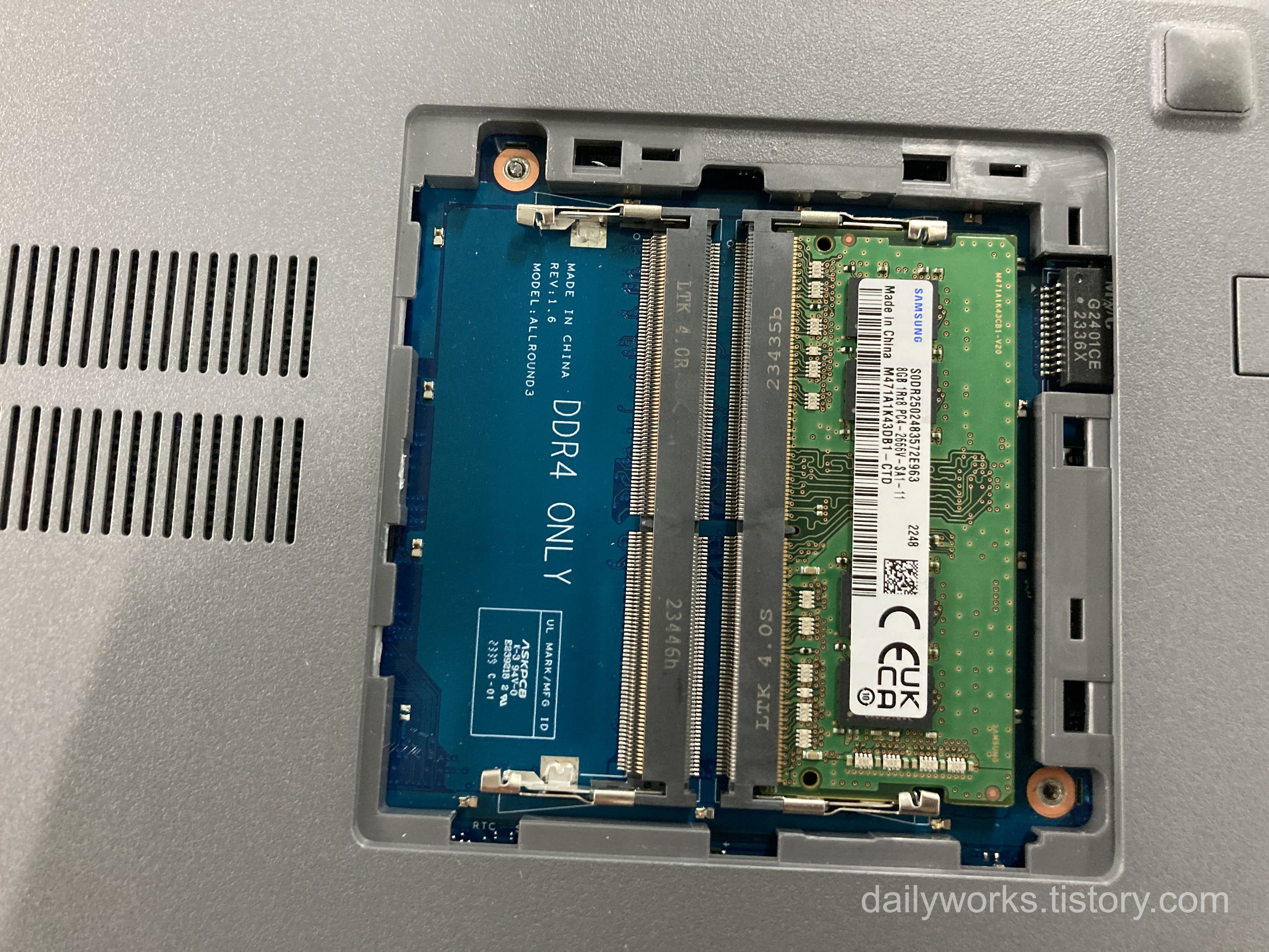 이제 RAM 슬롯이 완전히 노출되어 추가 또는 교체가 가능합니다.