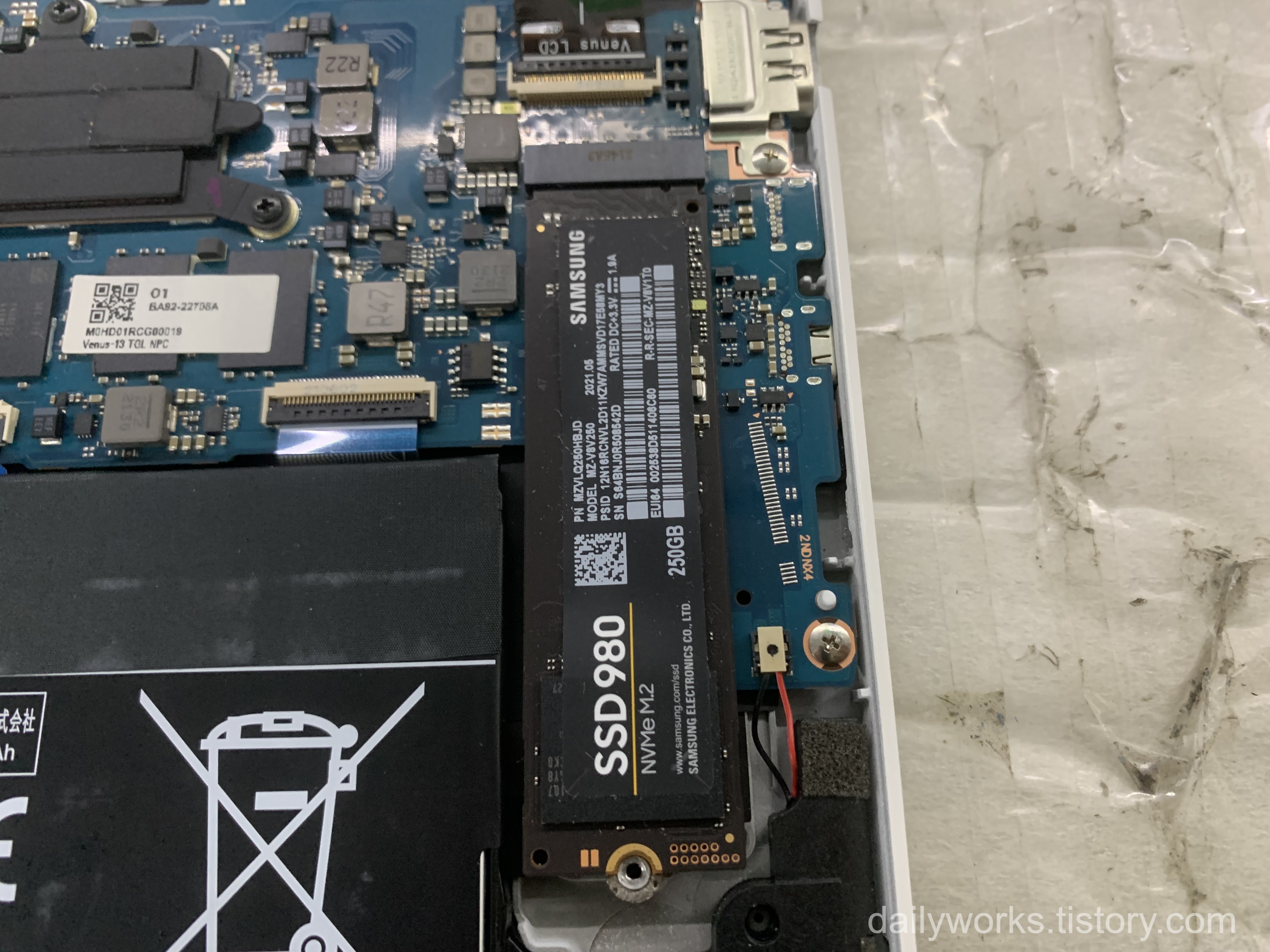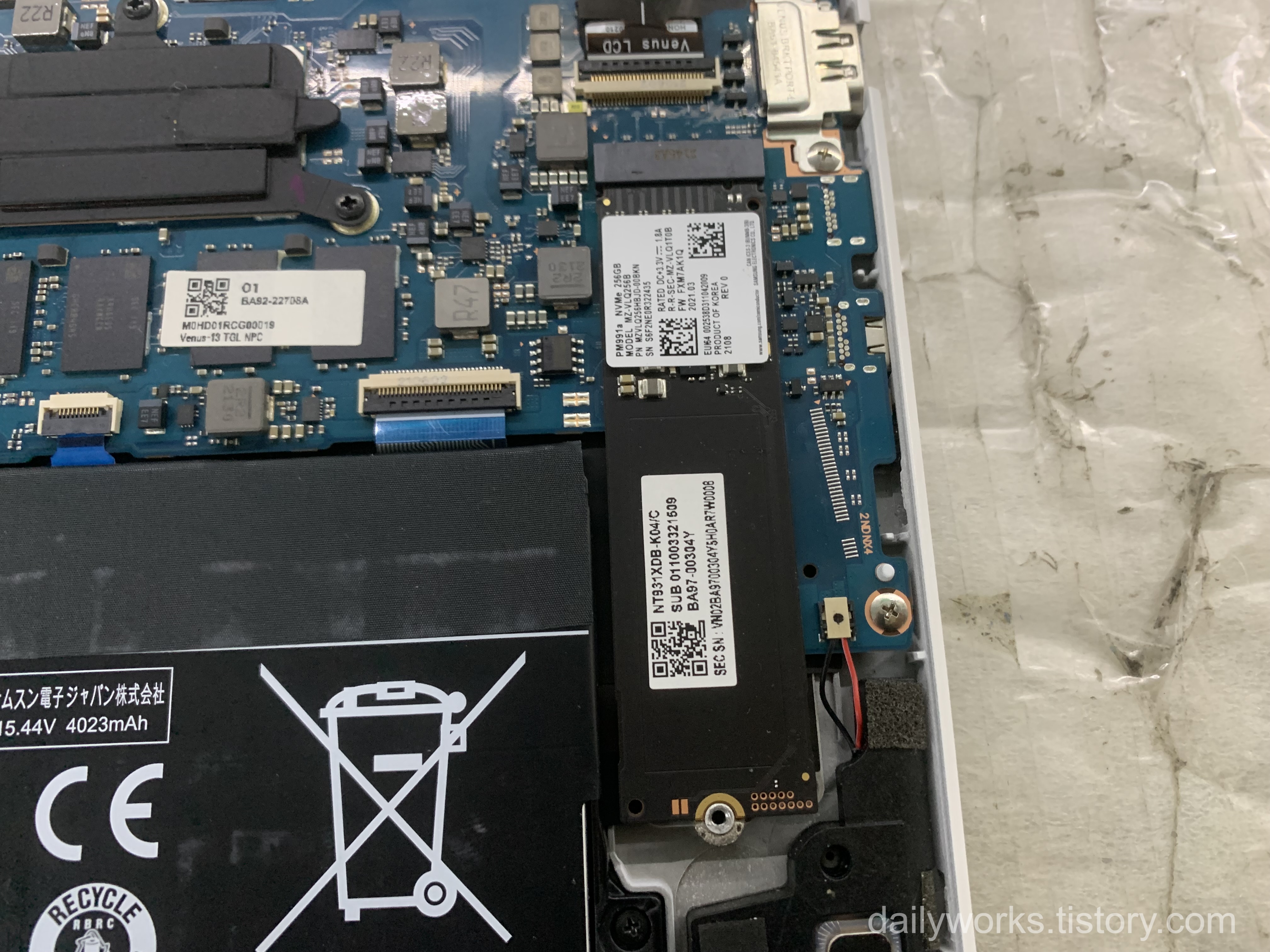 NT931XDB 노트북의 SSD 교체 방법을 사진과 함께 단계별로 안내합니다.